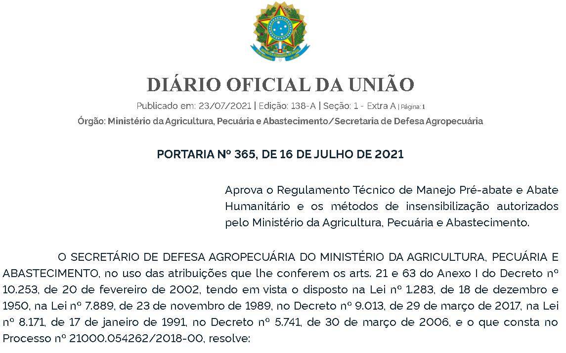 Estabelece os métodos humanitários de manejo pré-abate e abate