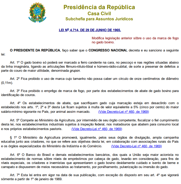 Dispõe sobre o uso da marca a fogo